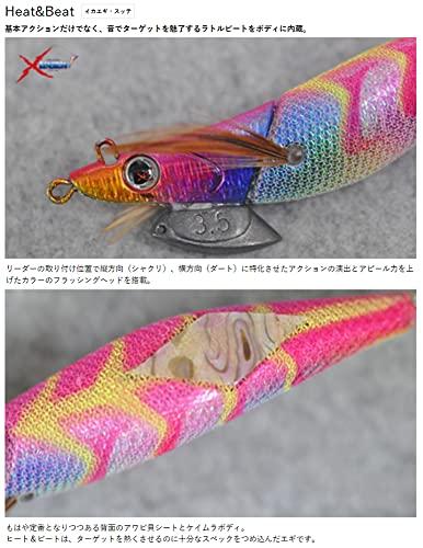 通常1-5営業日で発送:基本アクションだけでなく、音でターゲットを魅了するラトルビートをボディに内蔵。リーダーの取り付け位置で縦方向(シャクリ)、横方向(ダート)に特化させたアクションの演出とアピール力を上げたカラーのフラッシングヘッドを搭載。もはや定番となりつつある背面のアワビ貝シートとケイムラボディ。ヒート&ビートは、ターゲットを熱くさせるのに十分なスペックをつめ込んだエギです。