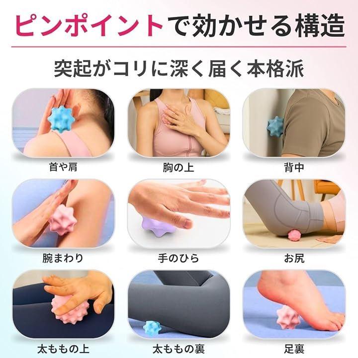 「ほど良い刺激で筋膜をピンポイントリリース」 金平糖のような突起が特徴のミニマッサージボールは、手のひらや足裏に転がすだけで、固まった筋膜をやさしくほぐします。
