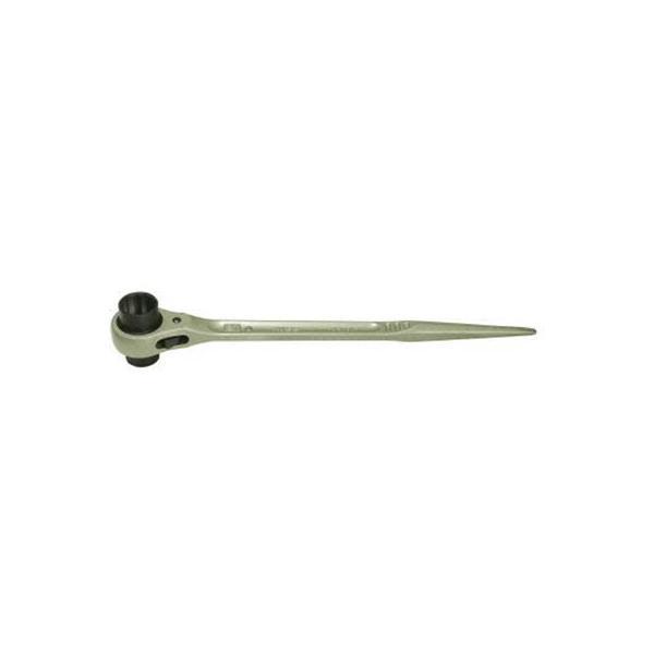 | 仕様 | ●対辺寸法(mm):21×24 ●厚み(mm):55 ●全長(mm):355 ●ハンドル先端は、鉄骨の穴合せやワイヤーロープの広げができます。 ●回転方向はワンタッチで変えられます。 |
