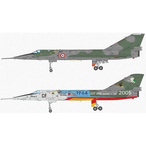 1/72 ミラージュIVP 超音速戦略爆撃機 w/ASMP中距離空対地巡航核ミサイル プラモデル ミラージュIVは、フランスのダッソー社が開発した超音速戦略爆撃機です。1964年より運用が開始されると、フランスの核抑止力として最初に戦力化されました。1996年に核兵器運用任務をミラージュ2000に引き継ぐと、ミラージュIVは全て偵察飛行隊に転属されました。2005年には全ての機体が退役しました。・新規金型パーツによりASMP中距離空対地巡航核ミサイルとパイロン、ロケット補助推進離陸装置を再現・エッチングと塗装マスクシール、3種フランス空軍デカールが付属・完成時に全長約326mm、全幅約165mmとなります