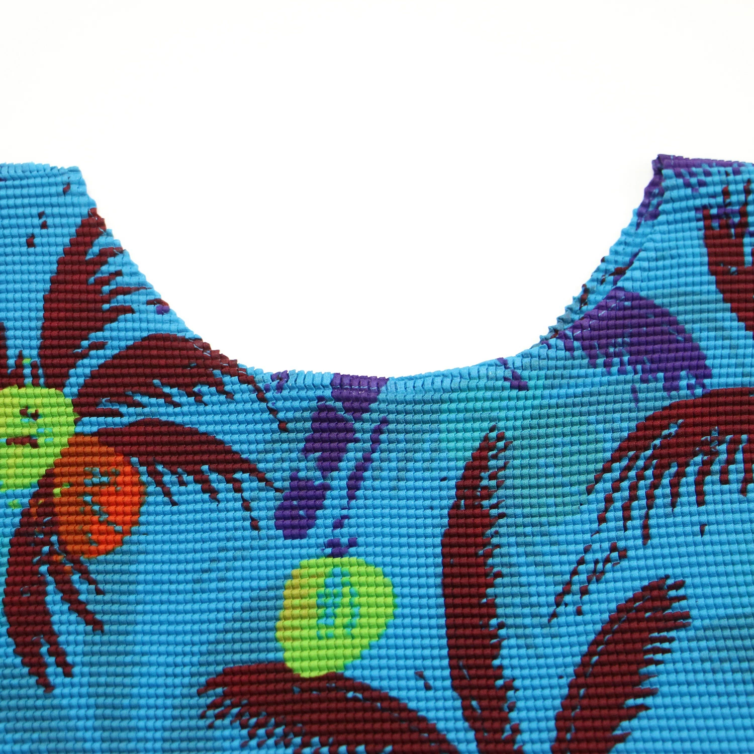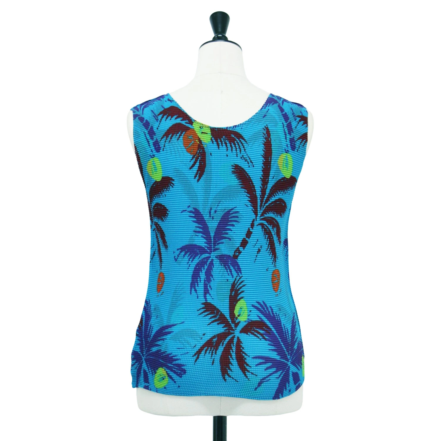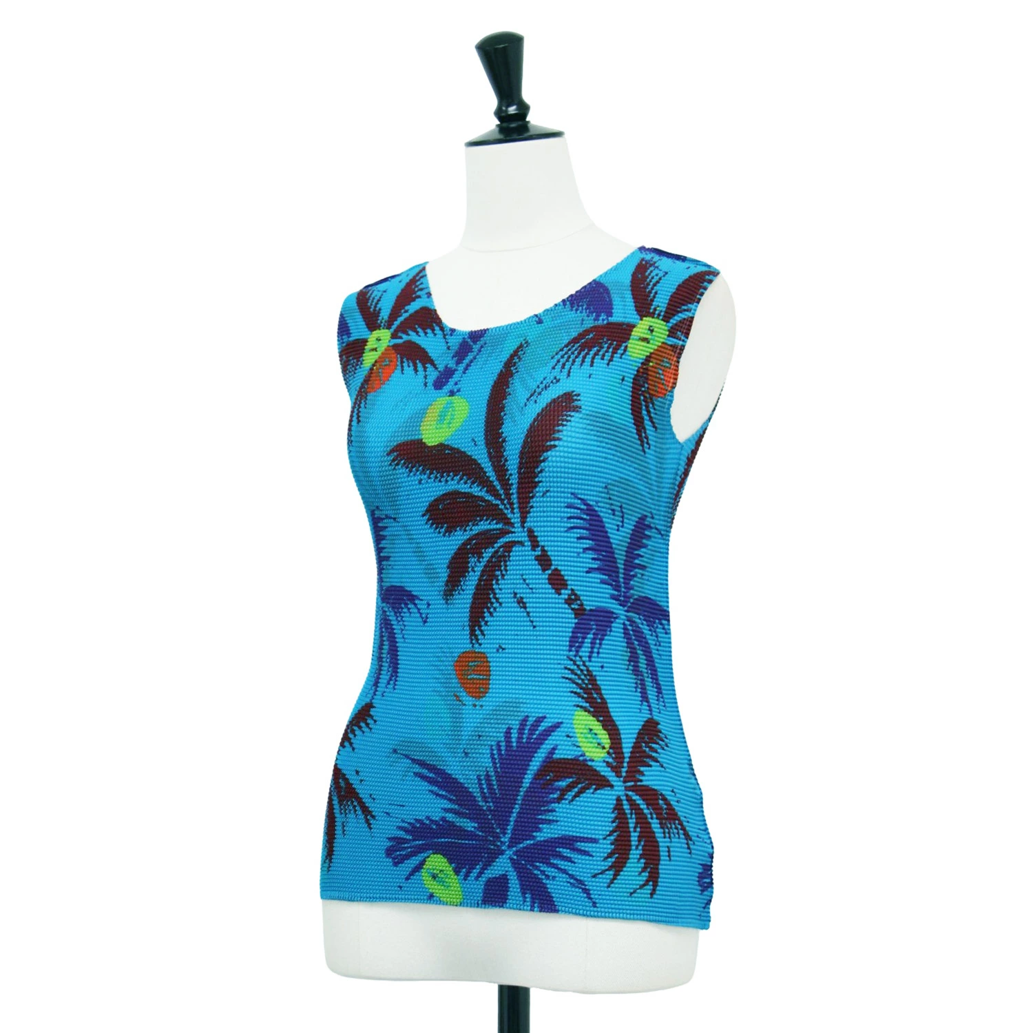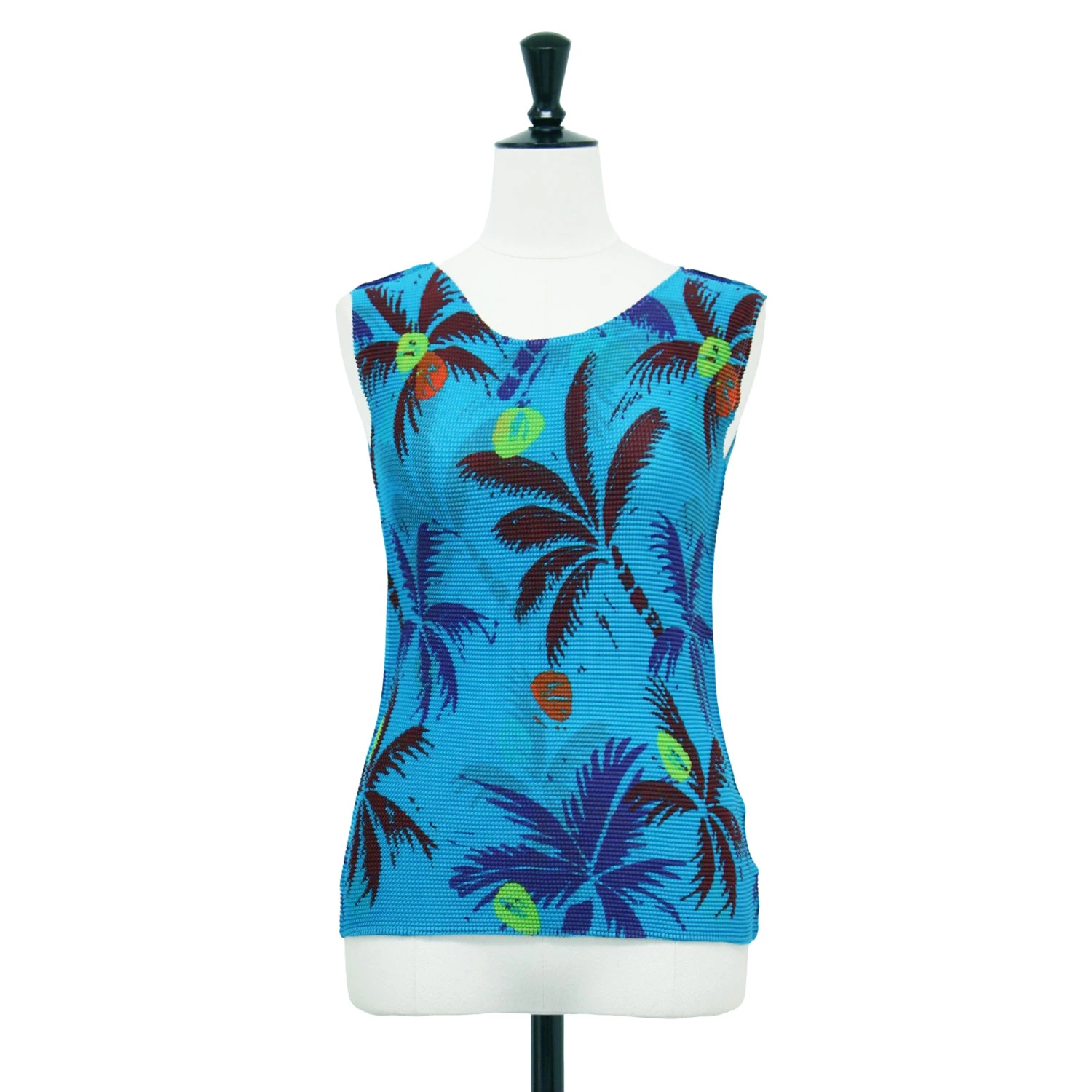 me ISSEY MIYAKE ミー イッセイミヤケ タンクトップ ブルー系 サイズ:FREE | ヤシの実柄 プリーツ タンクトップ | プルオーバー ブラウス | ノースリーブ クルーネック | トップス【レディース】【中古】【K4647】