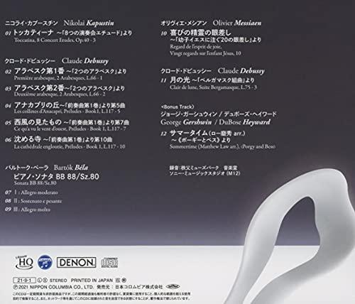 【収録内容】01. カプースチン:トッカティーナ~「8つの演奏会エチュード」より02. ドビュッシー:アラベスク第1番~「2つのアラベスク」より03. ドビュッシー:アラベスク第2番~「2つのアラベスク」より04. ドビュッシー:アナカプリの丘~「前奏曲第1巻」より第5曲05. ドビュッシー:西風の見たもの~「前奏曲第1巻」より第7曲06. ドビュッシー:沈める寺~「前奏曲第1巻」より第10曲07. バルトーク:ピアノ・ソナタSz.80 I:Allegro moderato08. バルトーク:ピアノ・ソナタSz.80 II:Sostenuto e pesante09. バルトーク:ピアノ・ソナタSz.80 III:Allegro molto10. メシアン:喜びの精霊の眼差し~「幼子イエスに注ぐ20の眼差し」より11. ドビュッシー:月の光~「ベルガマスク組曲」より