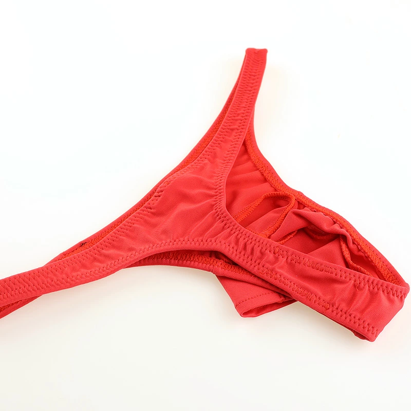 この生地は、発色が豊かでハリがあり、触り心地が気持ち良く、さらに伸縮性が高いストレッチ素材のE6000生地を使用したTバックビキニになります。内径約35から40mmの貫通型ゾウさんタイプの開放的で独立性のある下着になります。