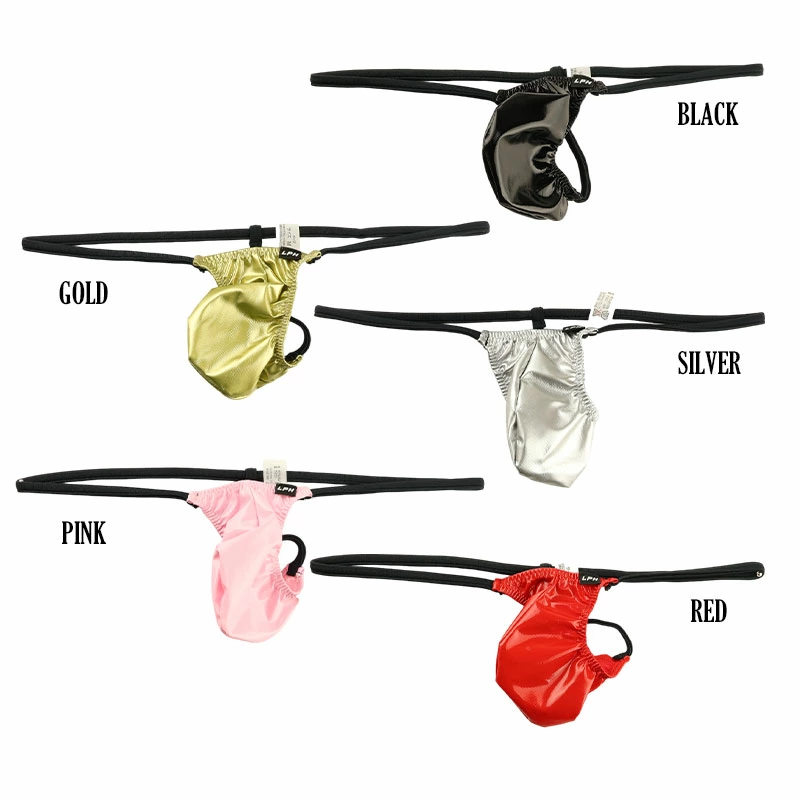 エナメル生地は、独特の光沢と艶やかな外観が魅力です。滑らかで冷たい手触りが特徴で、ポリウレタンやPVCでコーティングされた布地が使われているエナメル合皮生地を使用したGストリングビキニになります。とても生地の面積が小さくなった極小タイプのメンズセクシー下着になります。この生地は強い摩擦や高温には注意が必要です
