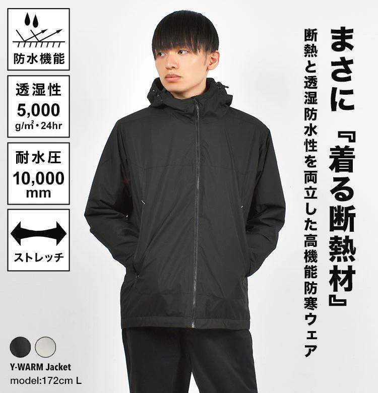 断熱性・透湿性に優れた画期的な断熱シート『Y-WARM』を表地と裏地の間に挟み込むことで、薄さと暖かさを両立。まさに『着る断熱材』のような防寒ジャケット。表地には撥水加工もほどこしており、耐水圧10000mm、透湿度5000g/m2・24hrとレインウエア並みの防水性能も備えています。動きやすいストレッチ素材やサッと取り出しやすい内ポケットや両脇のファスナー付きポケットなど、アクティブな作業に嬉しい機能性も◎寒い秋冬に最適な高機能防寒ワークウェアです。