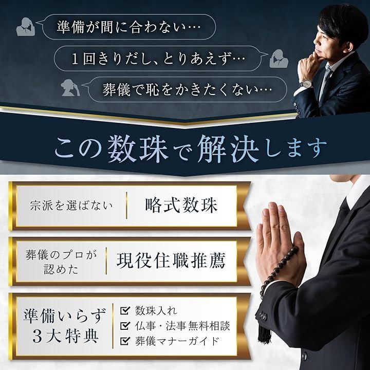 「静養寺 前島住職推薦」全宗派で利用可能な 男性用 略式 数珠です。