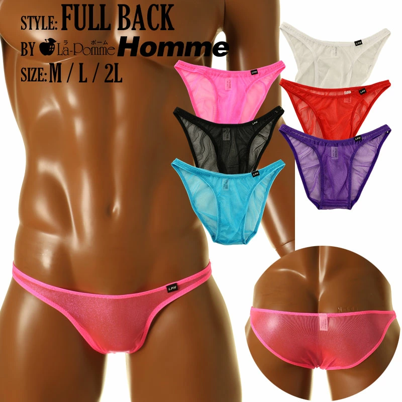 表面にキラキラとしたミストラメが加工された、軽くてふんわりとし透け感がありシースルー素材が特徴のスパークハーフ生地を使ったフルバックビキニになります。シンプルなデザインでMサイズ~LLサイズまでの3サイズ展開のメンズ下着!
