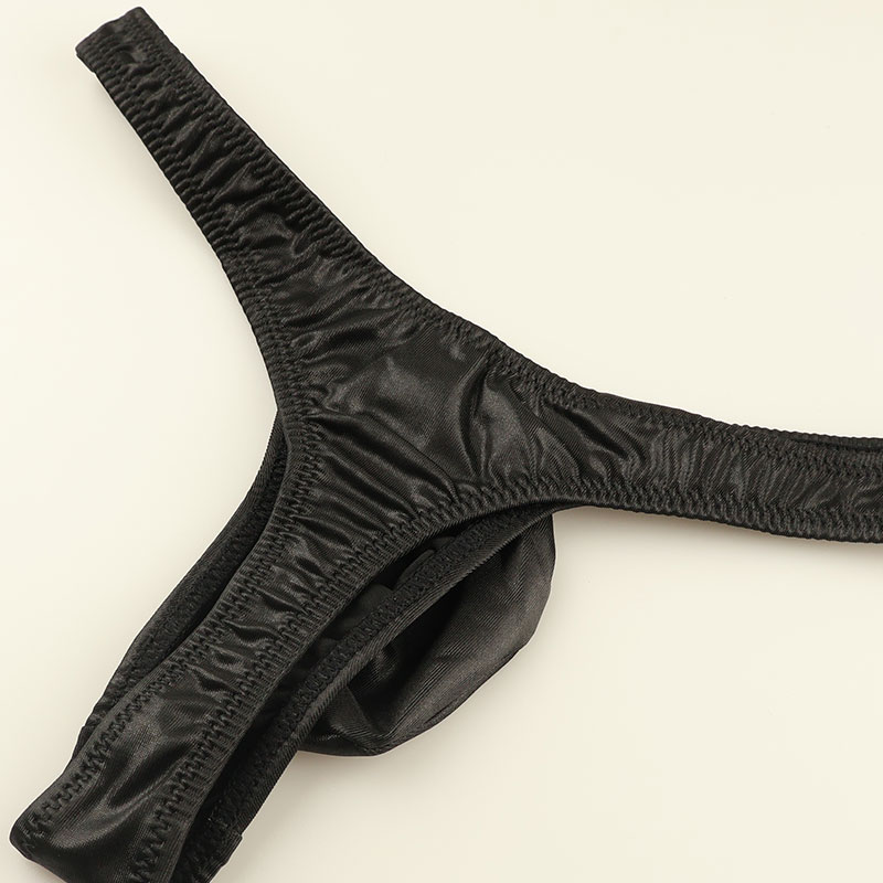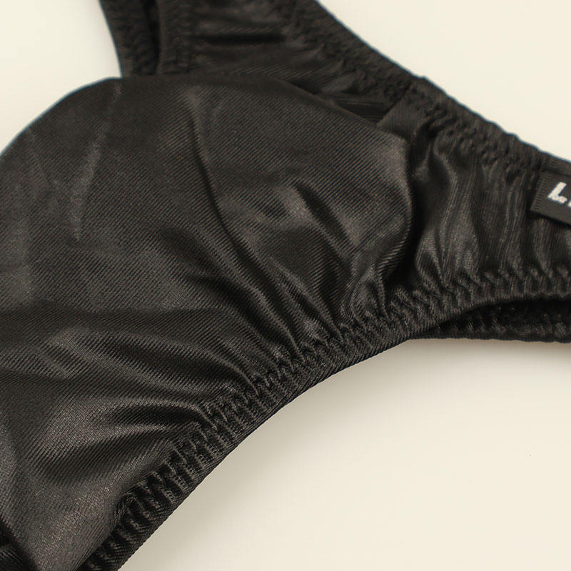 厚みがあり、光沢感のあるWET素材のストレッチ生地は、見る人の目を引く輝きを持ち、触れるとしっとりとした滑らかさが感じられます。その表面は光を反射して、独特の輝きを放ち、ストレッチ性があるため着用時の動きを制限せずに体にフィットするスーパーWET生地を使用したTバックビキニになります。フルシームになり男性自身を収めやすくなったセクシーメンズ下着になります。