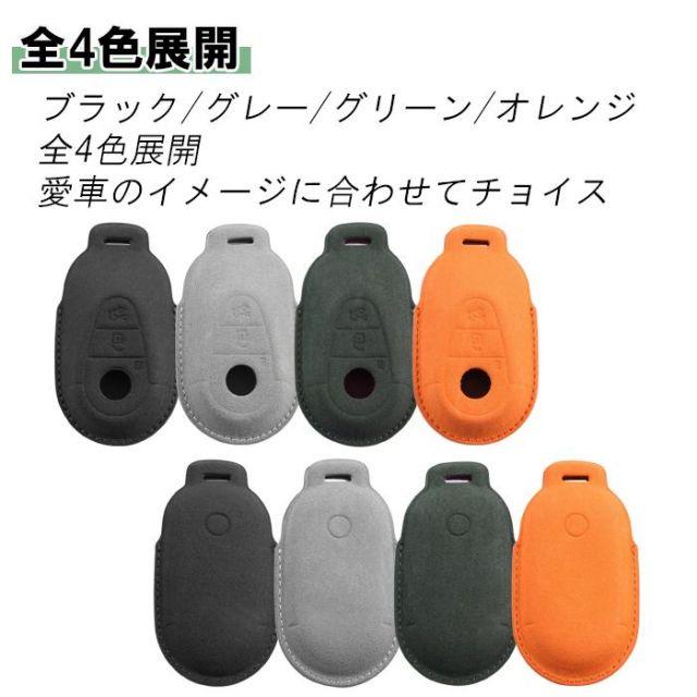 商品名:メルセデスベンツ アルカンターラ キーケース Cクラス Eクラス Sクラス GLC SL GT EQS W206 S206 W214 S214 W223 X254 キーカバー スウェード調・スポーティなアルカンターラを使用したキーケース。・立体成形でしっかりとフィットします。・電波への影響は一切なく、キー操作への支障はございません。・キーリングタイプとロープタイプ、2種類のストラップを付属。【適合】Cクラス W206 S206Eクラス W214 S214Sクラス W223CLE C236 A236SL R232GLC X254 C254EQS V297C43 C63 W206 S206S63 W223GLC43 GLC63 X254 C254AMG GT C192など※年式等で形状が異なる場合がございますので、画像内適合キー形状を必ずご確認ください。【カラー】ブラック/グレー/グリーン/オレンジ【材質】アルカンターラ【付属品】キーケース本体×1キーリングストラップ×1ロープストラップ×1【注意事項】・ご利用モニター環境の影響等で、実物と色調が異なる場合がございます。