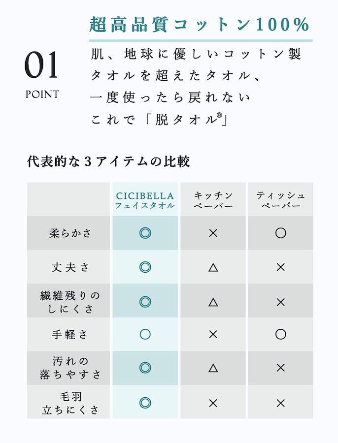 ■脱!タオル時代。美容のプロもご愛用している使い捨てクレンジングコットンタオル。肌への負担を研究してきたマスクブランドが本気で開発したフェイスタオルです。 ■植物由来から作られた安心のレーヨン100%素材。クレンジングタオルとして、洗顔タオル、メイク落としシート、様々なシチュエーションでご利用いただけます。 ■国内検査機関において検査を実地済。有害物質を含まないことはもちろんのこと、肌に優しいとされているpH数値も実証済みです。 【仕様 】素材:コットン100% サイズ:約20×20cm