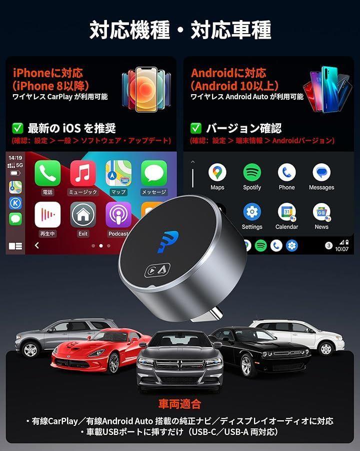 「対応条件とご注意」本製品は“有線CarPlay/有線Android Autoに対応した車載機”をワイヤレス化するアダプターです。