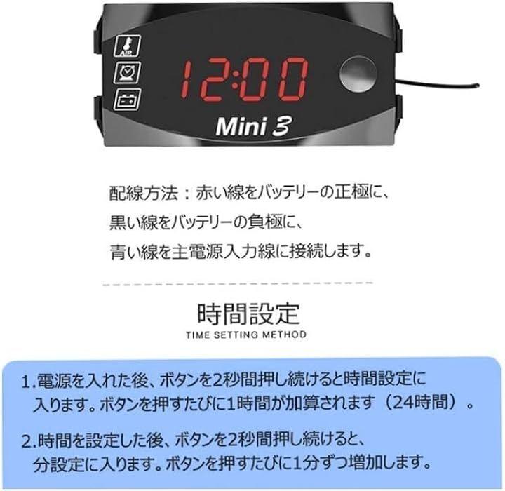このデジタルメーターは温度計、電圧計、時計の3つの機能を1つに集約し、ツーリング中の安全性と快適性をサポートします。
