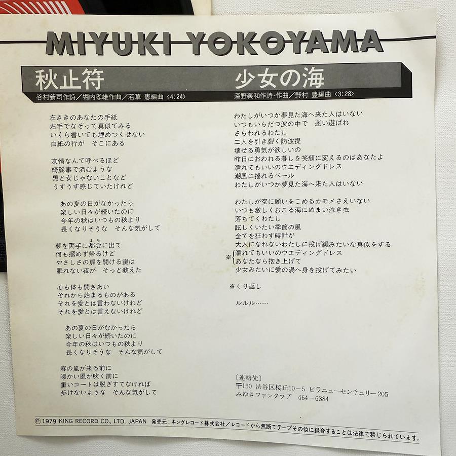 Miyuki Yokoyama Autumn Ending Girl's Sea Showa Era Vintage EP Record 7-inch Single Extended Play