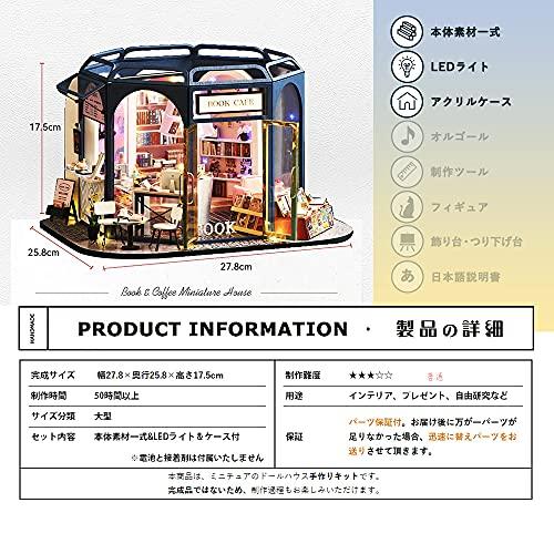 本商品はミニチュアのドールハウスの手作りキットになります。店内飲食ができる、総合書店です。3色のライトが雰囲気をぐっとおしゃれに引き締めてくれます。360度どこから見ても楽しい、1/24スケールのドールハウス。 【完成サイズ】 幅27.8×奥行25.8×高さ17.5cm 【サイズ分類】 大型 【制作時間】 50時間以上 【制作難易度】 ★★★☆☆(普通) 【セット内容】 素材一式&LEDライト&ケース付 【保証】:パーツ保証付。お届け後に万が一パーツが足りなかった場合、迅速に替えパーツをお送りさせて頂きます。 制作時間は50時間以上!完成した時の達成感が格別!じっくりどっぷりドールハウスの世界感に没頭した時間を過ごせます♪完成品は、ついつい何度も眺めてしまうことになります…♪日常で見慣れたビーズや、金具などがみるみるうちに小さな家具に生まれ変わる様子は感激! 【 フルカラーで全行程を丁寧に解説 】箱・説明書は中国語で書かれていますが、図解されていますので理解できます。初心者の方でも作って頂けるよう、説明書はフルカラーで全行程が丁寧に解説されています。 【 熱中すると時間が経つのがアッという間! 】 巣ごもり中のおうち時間の新しい趣味としていかがでしょうか?熱中していると時間が経つのがあっという間です。夏休みの自由研究、バレンタイン、誕生日、クリスマス、ハロウィン、父の日、母の日などのプレゼントにもおすすめ。
