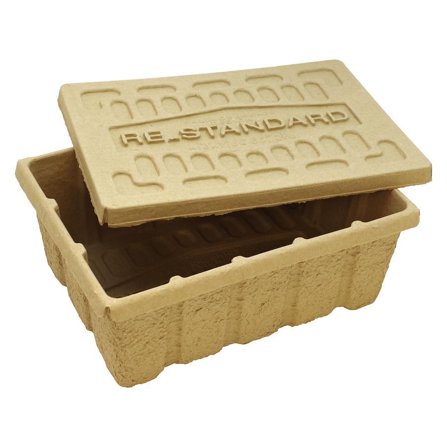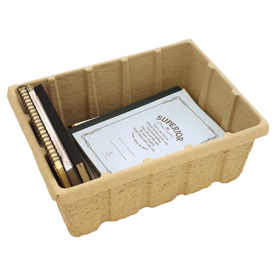 古紙100%(段ボール80%/新聞紙20%)でできた収納ボックス。。紙製ながらしっかりとしたつくりで、積み重ねも可能です。(耐荷重は8kg程度、5段までスタッキングできます)。雑誌や靴などの収納にどうぞ。。。・外寸:横400×縦300×厚155(mm)。・内寸:横358×縦255×厚143(mm)。。◎ご注意。※湿気の多い場所でのご使用や、水濡れは、変型やカビの原因となりますのでご注意ください。。※本体上部の縁は耐久性に限界があるため、持ち運びには適しておりません。保管用としてご使用ください。。。