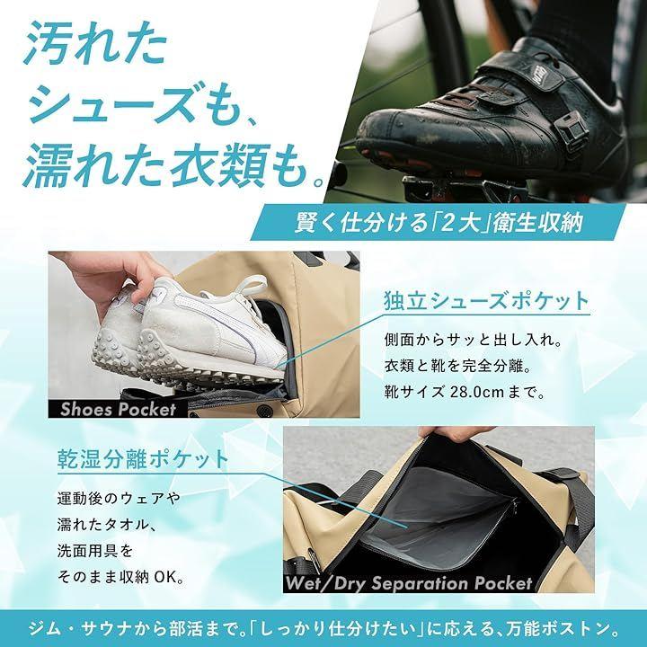 シューズコンパートメントとウェットポケットが付いているため、汚れた靴や濡れた衣類を他の持ち物と分けて収納でき、バッグの中を清潔に保ちます。