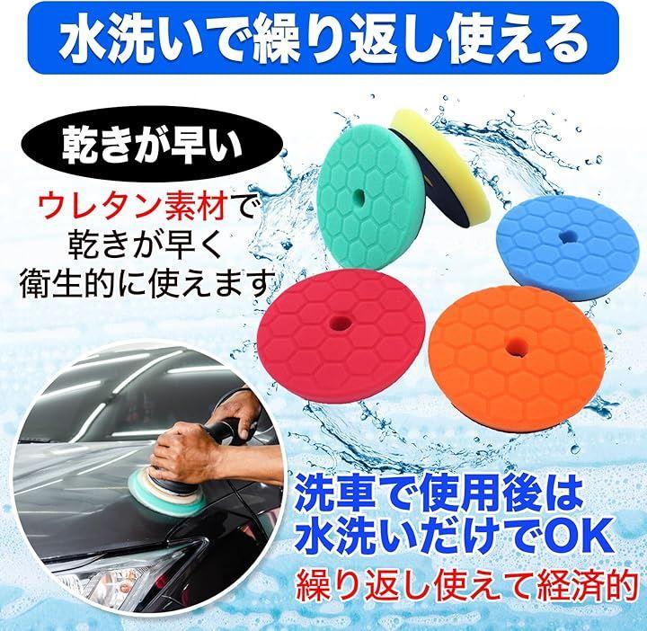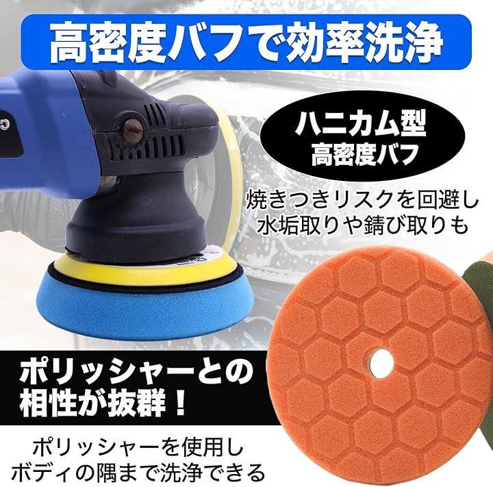 「仕上がりに差が出るウレタン構造」高密度なウレタンスポンジを使用した研磨バフは、ポリッシャーとの相性が良く、車のボディにムラなくフィット。
