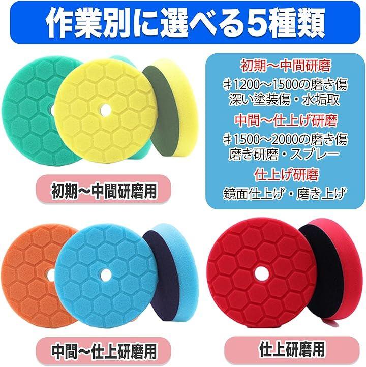 各カラーは柔らかさや用途にあわせて設計されており、研磨・艶出し・仕上げまで段階的に対応。