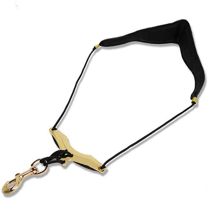 高級感のあるゴールドとレザー調ベルトによる、サックス用ストラップ