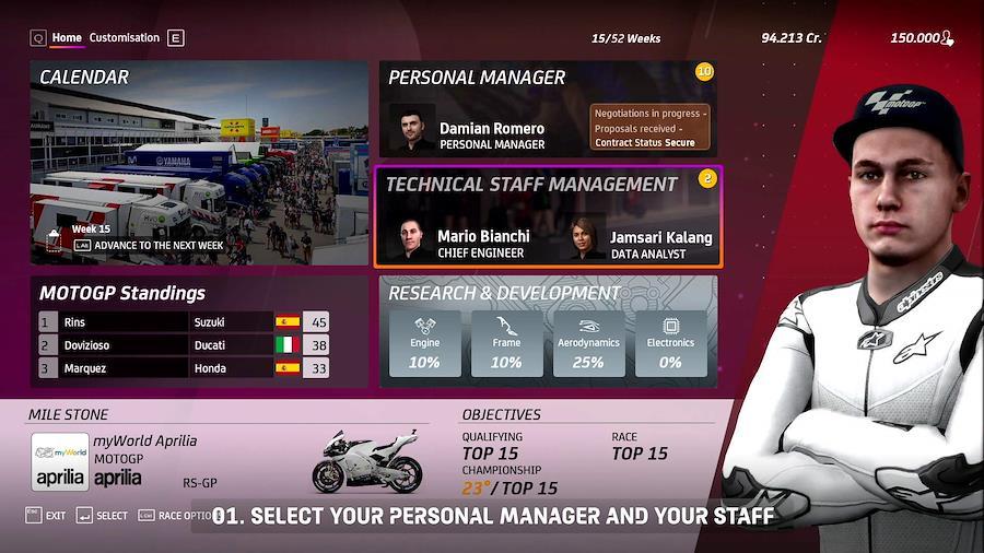 チームを育成するマネージャーキャリアモードが復活!マネージャーの立場となりチームを監修する「マネージャーキャリアモード」が更に進化して復活! オリジナルキャラクターを育成するだけではなく、ライダーやスタッフを雇用し、世界制覇を目指すチームを作り上げるモードとなっている。