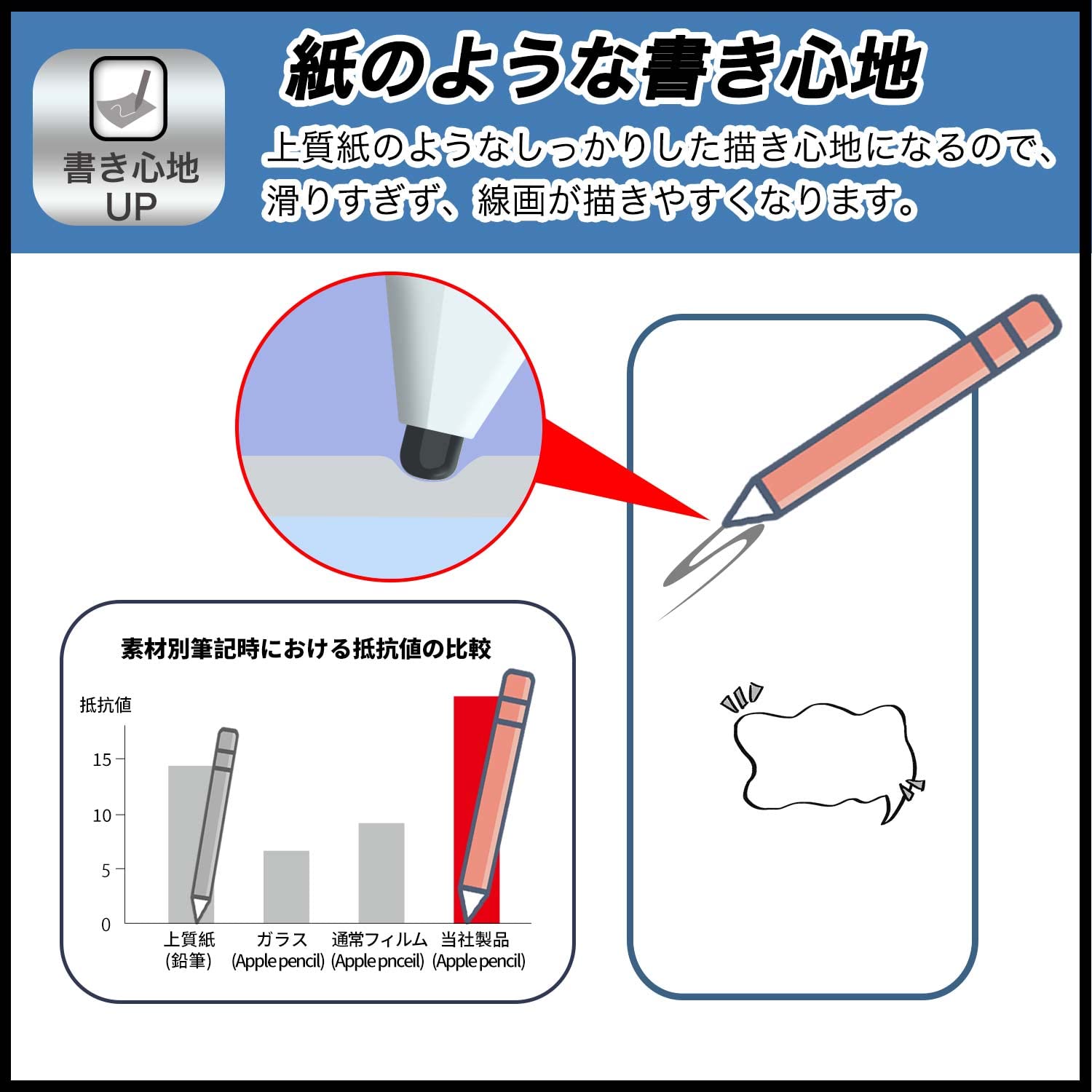? 特殊表面形状デザインにより、上質紙に鉛筆で描いたような描き心地を実現します。