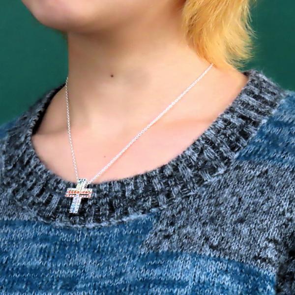 【モチーフ】 十字架、クロス ◆モチーフ意味 十字架といえばイエス・キリスト。 イエス・キリストは、人類を罪から救うため、十字架に磔刑に処されたといわれています。 そのため、十字架はキリスト教における救いのシンボルであり、特別な意味を持つ尊重されるべきしるしでもあるのです。 このような背景があるため、クロスは愛、救い、永遠、解放、生命力、復活など、多様な意味を持ちます。 また、クロスには守護の要素が強く、魔除けの効果があり、天からの加護や災いを跳ね返してくれる力が高まるともいわれています。 ◆商品名 マルチカラークロスネックレス(PDT-345) ◆素材 シルバー925 スターリングシルバー ◆ペンダント寸法 縦26mm×横21mm ◆ストーン マルチカラー キュービックジルコニア ◆チェーン長さ 35~60cmの中からお好みの長さをお選び下さい。 1.8mmシルバー925小豆チェーン ◆付属品 ジュエリーBOX、ショップ袋、品質保証書 *プレゼント梱包出来ます ◆実店舗 Grand Galleria(グランドガレリア) JR帯広駅より徒歩5分の場所にある2012年オープンのフラッグシップショップ。 ジュエリー工房を併設し、常駐する職人自らと打ち合わせも可能なため、修理や加工、お客様のご希望に沿ったジュエリーもお作りすることが可能です。 ◆オススメ使用シーン ・様々な贈り物に プレゼント 贈り物 誕生日 誕プレ 誕生日プレゼント バースデー バースデイ 御祝 御祝い お祝い 母の日 父の日 クリスマス クリスマスプレゼント Xmas 春夏秋冬 成人 成人式 卒業 卒業式 進学 就職 入学 金婚式 銀婚式 出産 結婚 開店 開業 定年退職 退職 移動 転勤 バレンタイン バレンタインデー バレンタインデイホワイトデー ホワイトデイ ごほうび ご褒美 御褒美 ・想いを込めて ありがとう 感謝 ごめんなさい 許して ごめんね よろしく おめでとう おめでとうございます 仲直り ・こんな方に 自分 彼女 彼氏 大切な人 大切な方 お父さん お父様 父親 親父 父 お母さん お母様 母親 母 兄弟 姉妹 子供 おばあちゃん 祖母 おじいちゃん 祖父 奥さん 妻 旦那 旦那さん 先生 生徒 職場 先輩 後輩 上司 部下 同僚 友達 友人