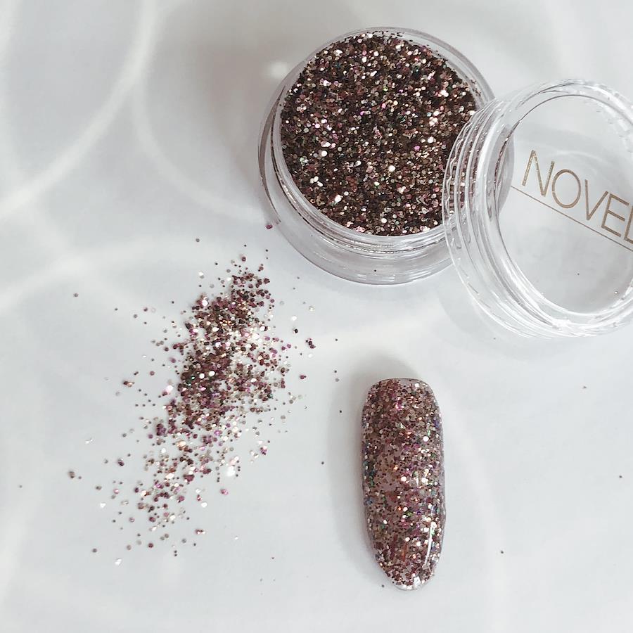 光の加減で色が変わり深みのあるパープルやグリーンのカラーが特徴的な秋をイメージしたグリッターです。シャンパンの細かなラメもミックスされているのでアクセントをつけながら上品なデザインに仕上がります。
