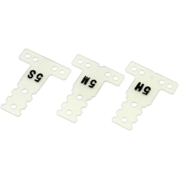 FRPリヤサスプレートセット (0.5/MR03MM/LM/MM2用) MZW437 MINI-Z用オプションパーツ。従来品 (MZW409)が0.6mm厚のところ0.5mm厚の軟らかいタイプでソフト、ミディアム、ハードの3種類セット。種類判別用の印字付。