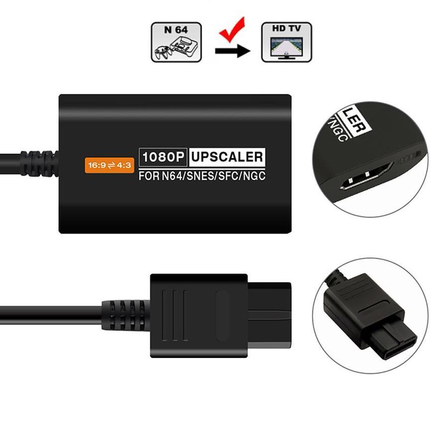 This product converts N64 / Game Cube / Super NES signal to HDMI signal for HDTV, Monitor, Projector. Only support (N64/ Game Cube/SNES to HDMI conversion, not for reverse orientation N64 / GameCube/SNES to HDMI Converter Adapter Support Video Input Modes: All Display Modes 240P / 262p / 480i / 576i / 480p / 576p; Bring the old n64 / snes / ngc back on your TV and experience those games big screen Output video and audio in Full Digital HDMI format (10800p) without loss of transmission. Compatible with all N64 / NGC / SNES display modes (PAL / NTSC). (This product can only be converted and will not improve the quality of the game. ) Plug and play, no need to install drivers. No external power supply needed, just plug and play. Lightweight and portable Supports Aspect Ratio Switching 16:9 / 4:3 Package Includes: 1 x N64 to HDMI Converter, 1 x HDMI Cable, 1 x Japanese User Manual