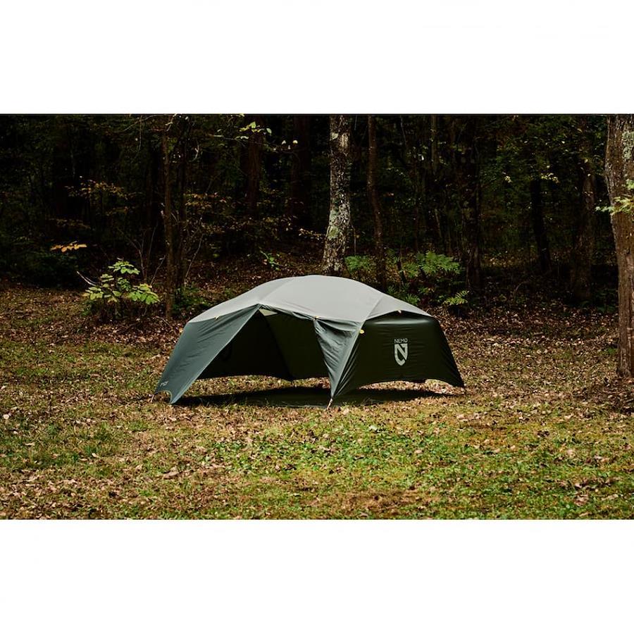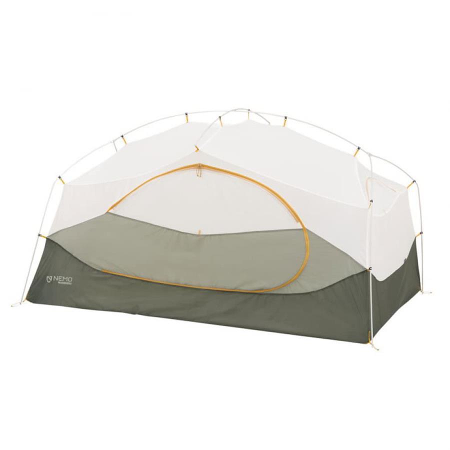 NEMOのデザインとクオリティ、イノベーションを体感する最初のステップとしてお勧めしたいエントリーユーザー向けテントです。 山のシェイプを連想させる特徴的なスクエアデザインを採用、ほぼ垂直に立ち上がったサイドウォールにより同等クラスの他のテントよりも圧倒的に広い居住空間を実現しました。 前後にゆとりのある前室とドアを装備し、ギアを置くのに十分なスペースを確保しています。 インナーテントの前後左右に開閉可能なベンチレーションを装備し、オールシーズン快適に使用できます。