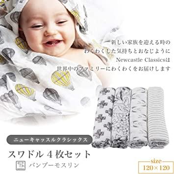 通常1-5営業日で発送:アメリカ西海岸カリフォルニアのハイブランドNewcastle Classics。タイムレスなデザインで豊富なラインナップから厳選された4枚セット自分で使いたい!あの人に贈りたい!にぴったりが見つかります120×120cmのたっぷりサイズなので使いかたもいろいろ汚れたら洗濯機で丸洗いでき乾きも早いのでお手入れが簡単です【ベビーカーの日よけ】【お昼寝のブランケット】【ひざ掛け】【おむつ台のカバー】【沐浴、お風呂後のタオル代わり】【冷房対策として】