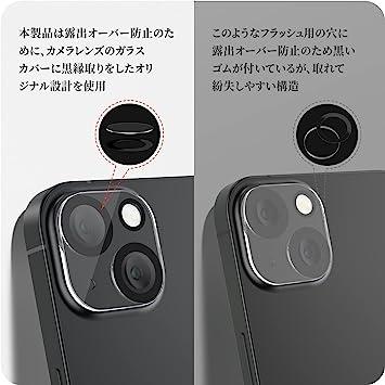対応機種 ?iPhone 13 mini / iPhone 13 用黒縁取り仕上げ仕様:本製品は露出オーバー防止のために、カメラレンズのガラスカバーに黒縁取りをした設計を使用します。カメラの自動露出機能を干渉せず、明るい被写体でも暗い被写体でも適正な明るさの写真を撮影することができます。※ご注意:本製品は露出オーバーを完全に防ぐものではありません。高品質素材製:強化ガラスを使用し、硬度は9Hの高硬度なので、ナイフや鍵などの尖ったものでも簡単には傷がつきません。カメラレンズ全面を守り、バッグやポケットの中で付いてしまう引っかき傷に対して高い耐性を持ちます。また、飛散防止設計により、万が一割れてしまっても、破片が飛散しなくなる保護フィルムです。ラウンドエッジデザイン:カバーの縁は2.5Dラウンドエッジ加工により、段差を感じない自然な仕上がりです。ガラス透明度は高く、貼ったままでもカメラ撮影に影響はほ