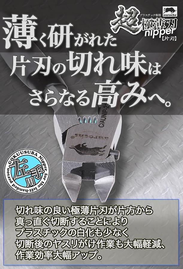 薄く繊細に研ぎ出された刃先は通常のニッパーよりも美しくゲートを切断可能です。