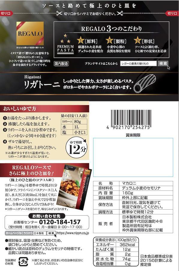 REGALOシリーズのしっかりとした肉厚で小麦のおいしさを楽しめるショートパスタです。