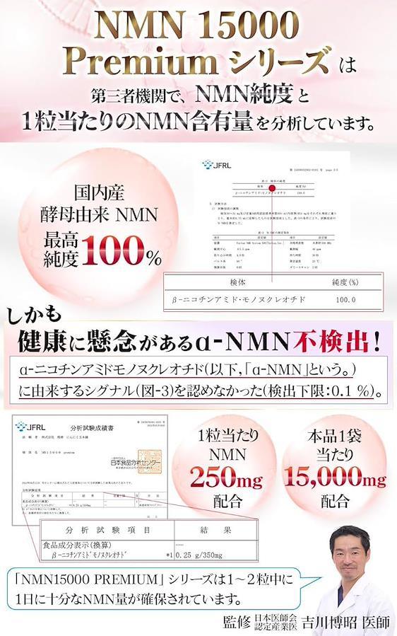 NMN 15000 premium シリーズは、それらの分析はもちろん、製造ロットごとに成分検査を実施しており、品質管理を徹底している信頼性の高いNMNです。