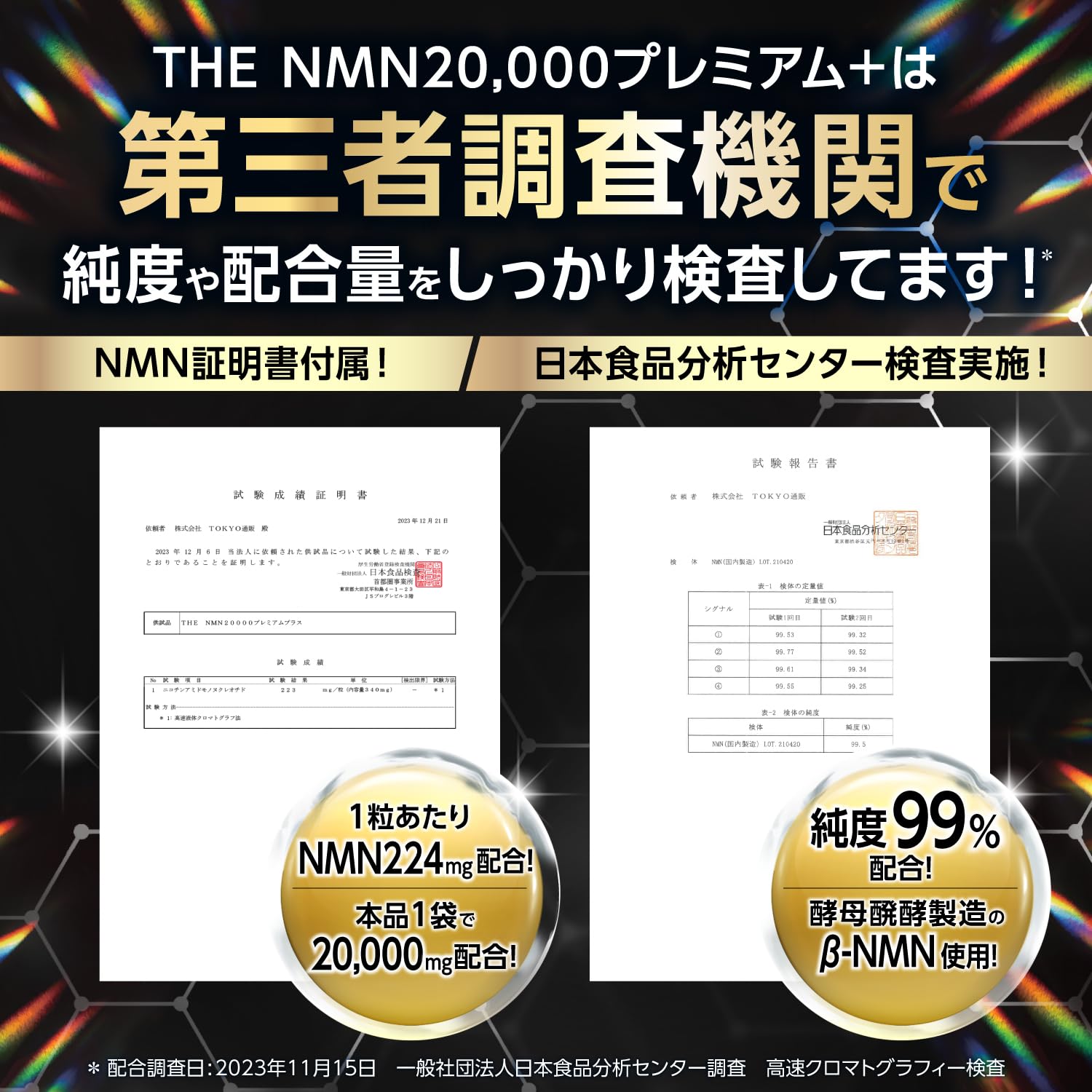 NMN 20000mg プレミアム 純度99%以上 臨床試験実施 日本製 レスベラトロール 90粒 TOKYOサプリ