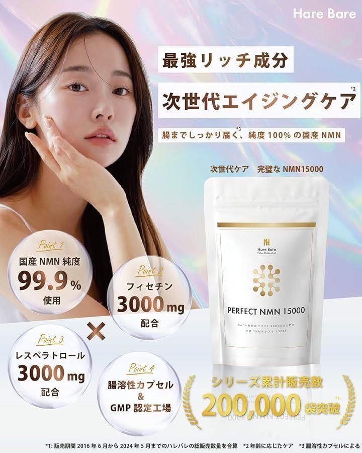 NMN 15000mg + レスベラトロール3000mg + フィセチン 3000mg +乳酸菌配合。