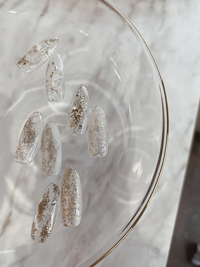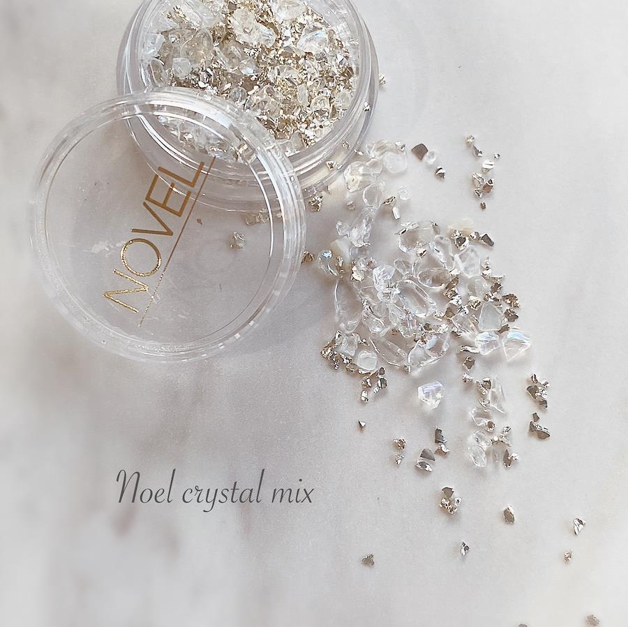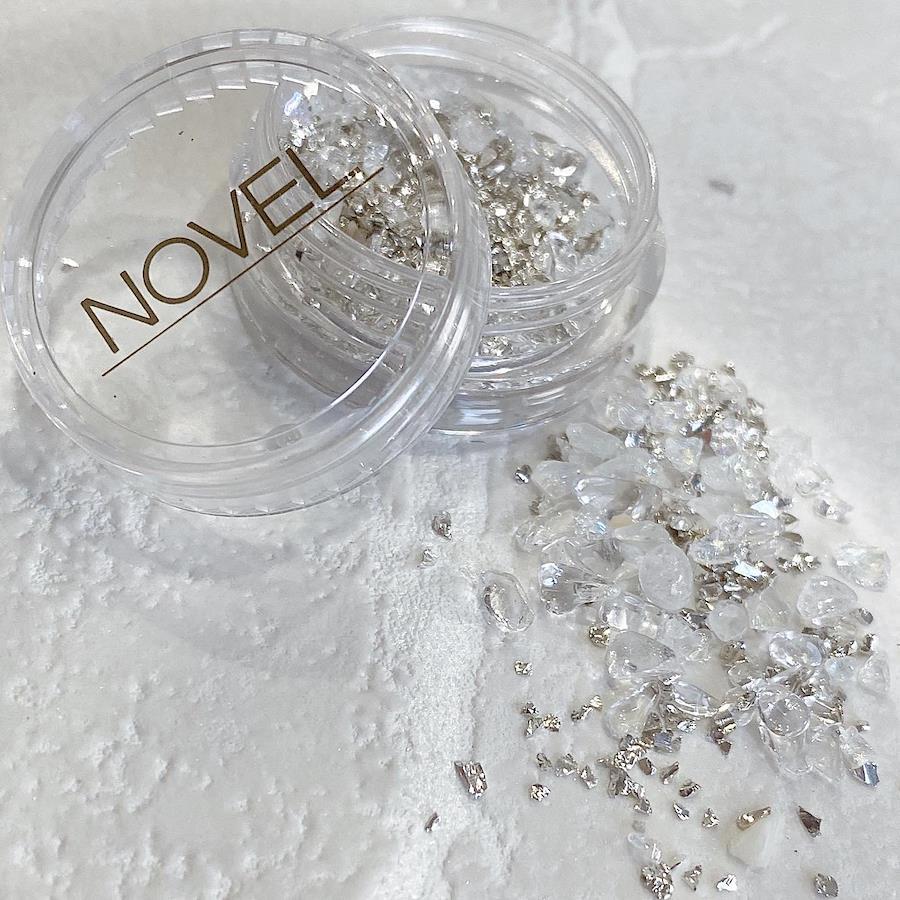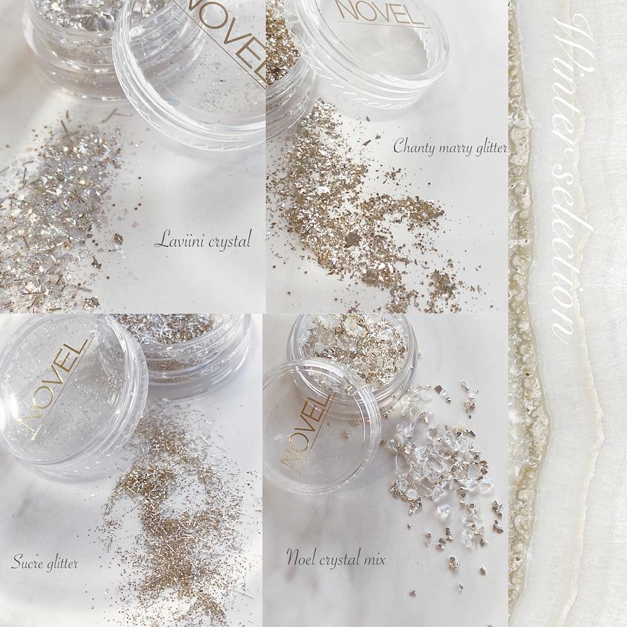 オーロラグロリアス、クラッシュグラスシルバー、クリスタルストーンのパーツミックス。同時発売の中のグリッターと組み合わせたり、ファンシーオーロラフレークをパーツの下に埋め込むのもオススメです。美しい輝きをお楽しみ下さい。