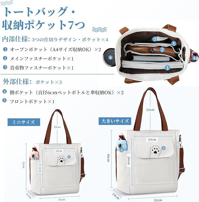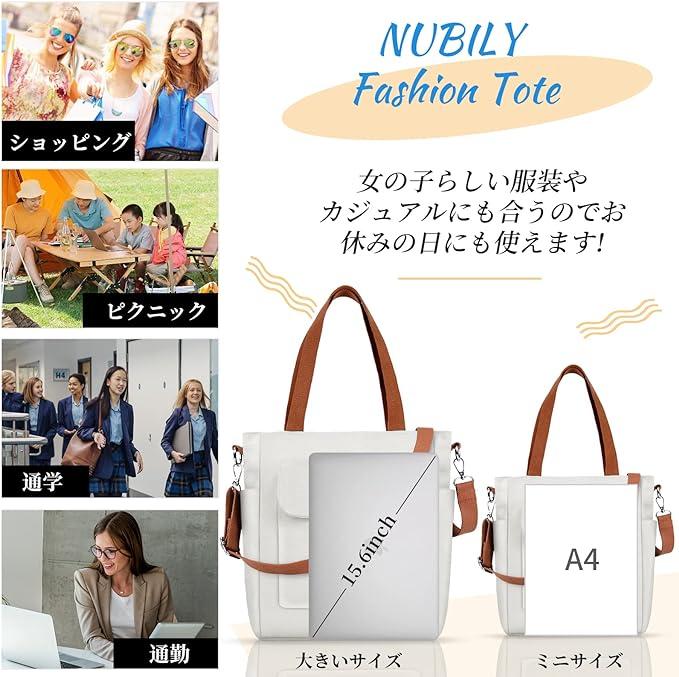 ■商品名[NUBILY] トートバッグ ショルダーバッグ キャンパストート 帆布 仕切り 外内ポケット 厚手 縦長 通勤 通学 (L%カンマ% ホワイト)