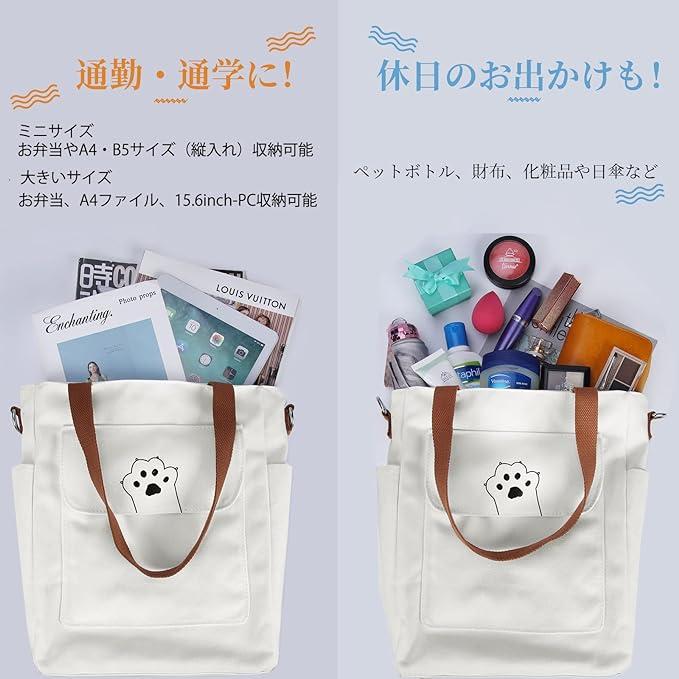 毎日使える!キャンバス素材を採用し、軽量で丈夫な作りなので、A4サイズの資料が収納可能で、通学時や、荷物が増えがちな買いものときに役立ちます。ショッピング、ビーチトリップ、旅行、買い物、ジムなどなシーンに活躍!