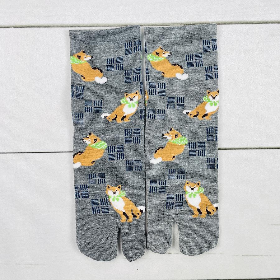桑メリヤス NUKU MOKU 柴犬 和柄 足袋型 婦人ソックス 23-25cm グレー 236572-1