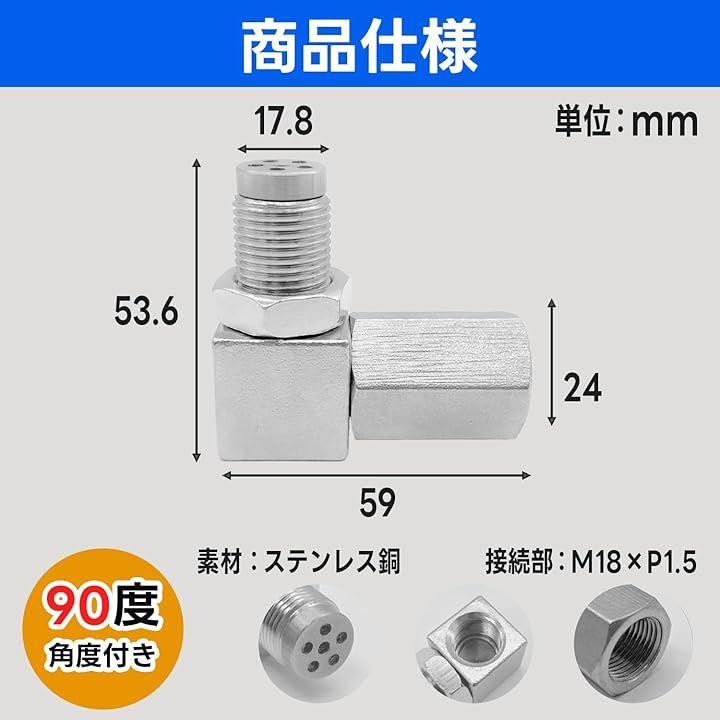「耐久性の高く長く使える、ステンレス素材を使用」90度タイプ:ステンレス銅 M18xP1.5