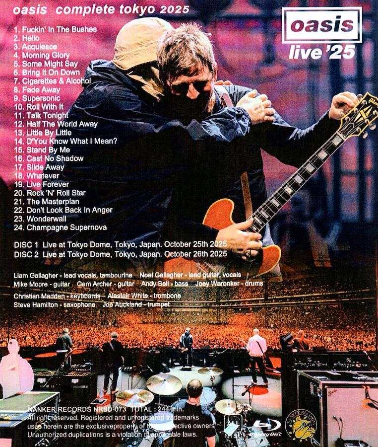 実に16年振りとなる再結成オアシスの大成功を収めた2025年10月25日と26日の東京ドームで行ったライブををNANKER RECORDオリジナルのHDフィルムを使用した安定感抜群の超高画質オーディエンス映像にて、感動的なライブを2枚組ブルーレイRに完全収録。両日共に視界良好な最高の場所からの極上ショット。25日の公演はほどんどがスクリーンを画面一杯に捉えたド迫力のプロショット級の美麗映像。対して26日の公演はノエル&リアムを中心に表情が伺えるステージを的確に捉えた臨場感溢れる映像。YOUTUBE映像とは比較にならない定評のあるNANKER RECORDならではの様々なショットを多数駆使した臨場感溢れる素晴らしい映像にて両日共に完全収録。全世界を熱狂の渦に巻きこんでいるオアシスの非の打ち所のない東京ドームでの素晴らしい感動のライブを極上映像にて存分にお楽しみ頂けます。