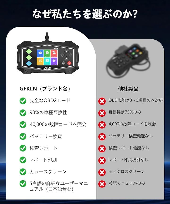 5.友情提示:自動車故障コードリーダーには詳しいユーザーマニュアルが付属しており、便利にご使用いただけます。