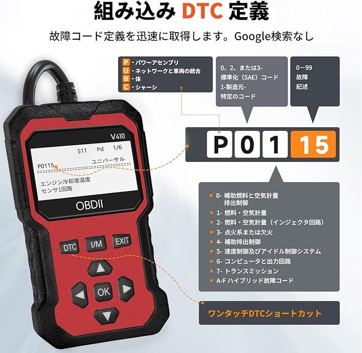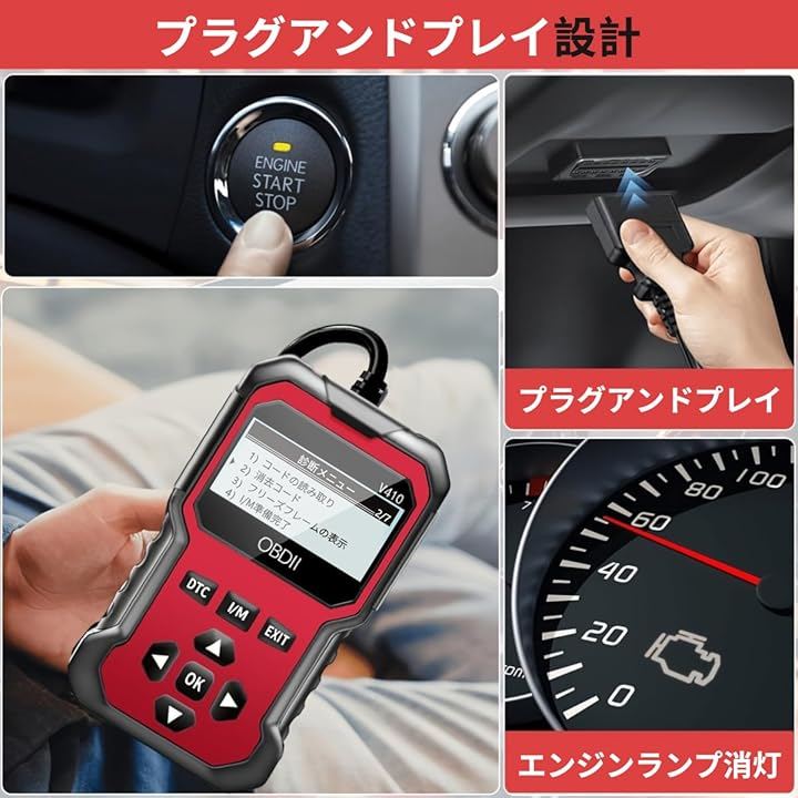 自分で故障コードを確認し、コードの定義を表示したり、車両の健康状態を把握したり、自動車修理工場でのメンテナンスに備えることができます。