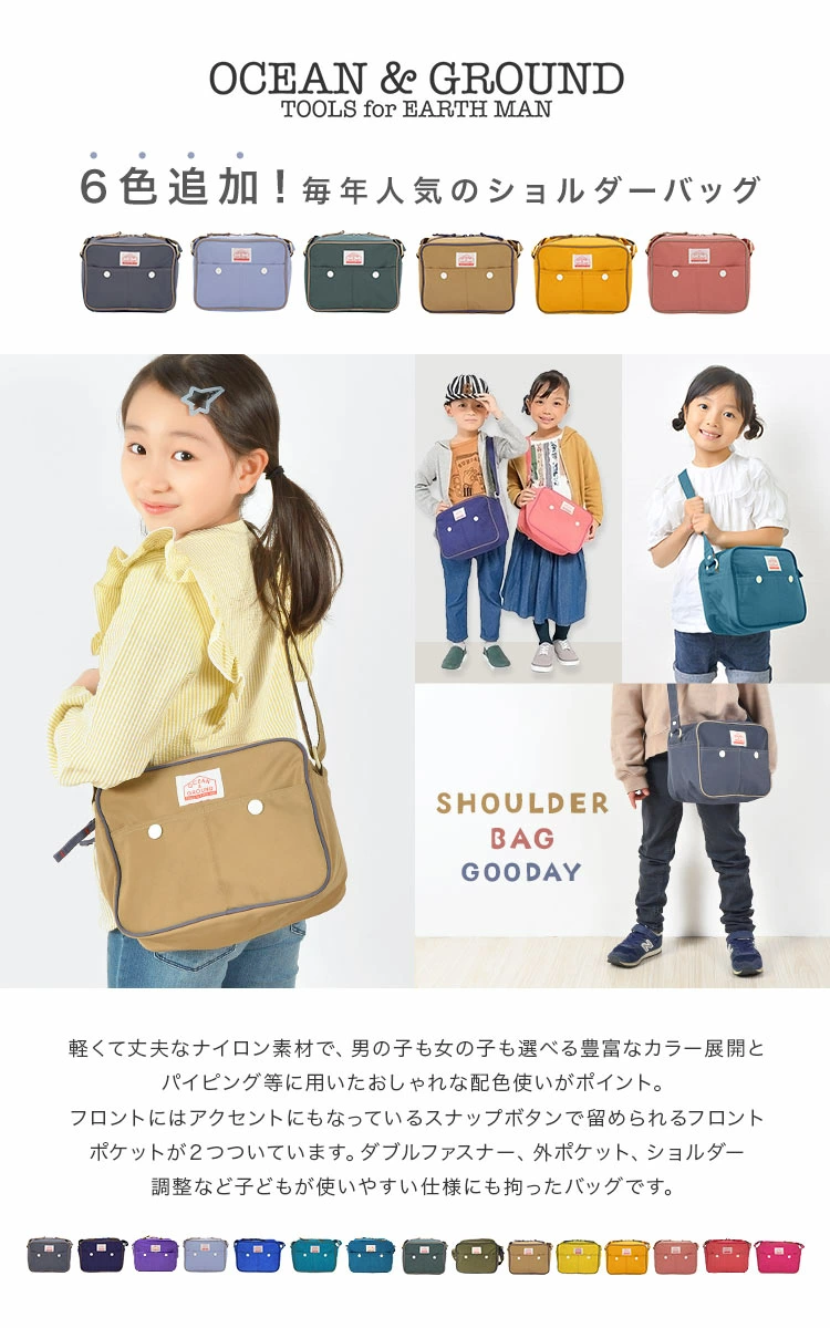 ■関連キーワード通園バッグ 通園バック 通園鞄 ショルダー 男の子 女の子 OCEAN&GROUND オーシャンアンドグラウンド GOODAY ショルダーバッグ ブランド ショルダーバック 4525001 通園 バッグ 鞄 キッズ 斜めがけ こども 子供 お弁当 保育園 小学生 低学年 通学 新入学 カラフル おしゃれ かわいい 保育園バッグ 幼稚園バッグ 無地 入園準備 軽量 シンプル 80cm 90cm 100cm 110cm 120cm 2歳 3歳 4歳 5歳 6歳 7歳 8歳 9歳 10歳 子ども 子供 こども キッズ ジュニア ベビー 息子 娘 孫 女性 女子 女の子 ガールズ girl 男性 男子 男の子 ボーイズ boy イエロー マスタード 黄色 ピンク ベージュ ターコイズブルー ブルー 青色 水色 ダーク ネイビー 紺 グリーン 緑 エメラルドグリーン レッド ライトパープル ラベンダー 紫 ブラック 黒 くすみカラー ポップ 派手 おでかけ bag ナイロンバッグ 丈夫 汚れにくい 水に強い 旅行 男女兼用 多機能 おそろい お揃い 姉妹コーデ 双子コーデ 人気 入園祝い 入学祝い 進学祝い お祝い 景品 プレゼント ギフト クリスマス 誕生日 こどもの日 おしゃれ オシャレ お洒落 ネームタグ付き ネームホルダー付き 内ポケット 配色 バイカラー スクエア 四角 日常使い