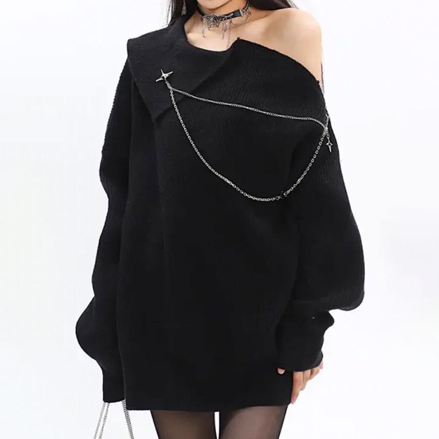 ・チェーンと星ブローチは好きな場所につけてグッと格上げコーデ。