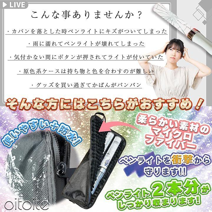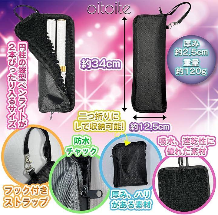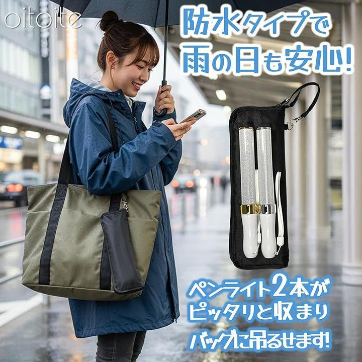こちらのペンライトケースは、ライブや推し活必須アイテムのペンライトを最大2本収納でき、何色にも合わせやすい飽きのこないシンプルデザインで防水機能付きです。