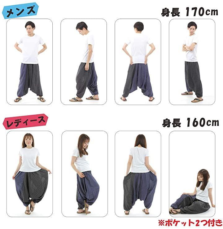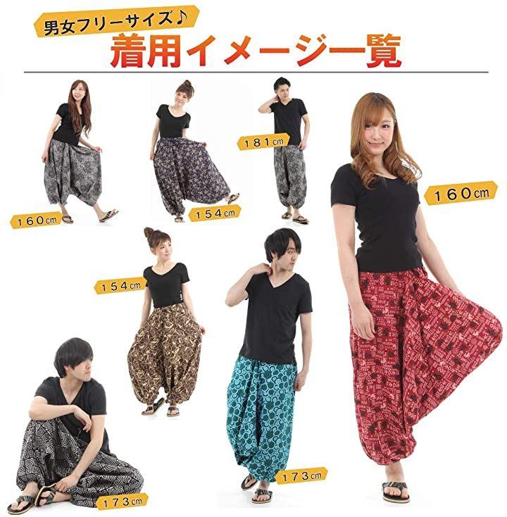 ゆったり着られて春~秋まで普段着としても出掛けられ、またイベントやダンス、お祭りなどでも幅広く愛されているサルエルパンツ(アラジンパンツ)です。