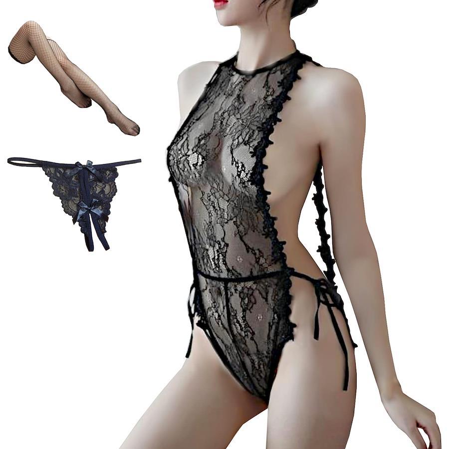 OLYOLY【3点セット】過激なOLさんの透け透けハイレグレオタード セクシーコスプレ下着 ランジェリー 透ける水着 シースルーレース Tバック ニ